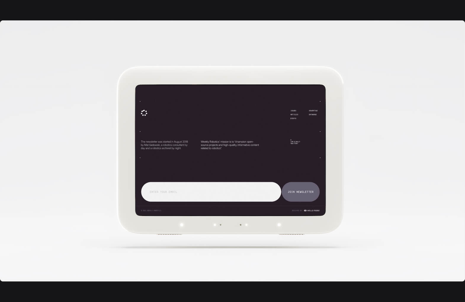 Hello Robo partnered with Weekly Robotics to reimagine their brand and website and a technical newsletter that curates the latest news, research, and projects in robotics.